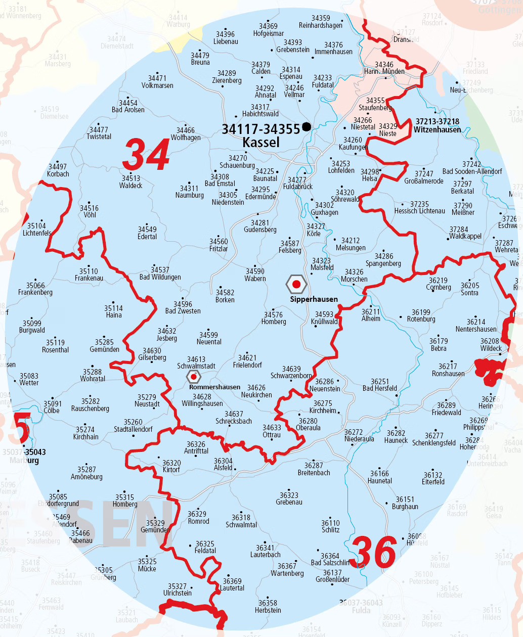 Von unseren zwei Standorten in Rommershausen (Nähe Schwalmstadt) und Sipperhausen aus decken wir den umliegenden Großraum ab. - (34) Region Kassel: 34117–34355 & Umkreis - (35) Region Marburg: 35037–35043 & Umkreis - (36) Region Fulda: 36037–36043 & Umkreis - (37) Region Witzenhausen/Göttingen & Umkreis ..sowie alle Orte dazwischen!